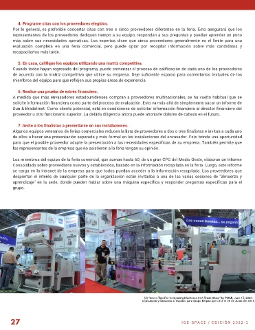 de ellos a hacer una presentación separada y más formal en las instalaciones del envasador. Esto brinda una oportunidad