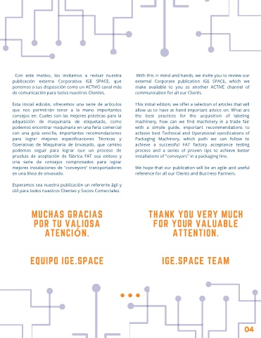 publicación externa Corporativa iGE SPACE, que external Corporate publication iGE SPACE, which we